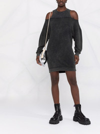 cold-shoulder dress acid black cotton ribbed detailing cold-shoulder design round neck long sleeves Imported Composition Cotton 100% SIZE & FIT Model measurements Height 5 ft 10 in(1.77 m) Bust/Chest 32.28 in(82 cm) Hips 35.03 in(89 cm) Waist 25.19 in(64 cm) Measurement Shoulder Width 24.01 in(61 cm) LENGTH 32.28 in(82 cm) WAIST 35.43 in(90 cm) BUST 45.66 in(116 cm) FittingInformation This piece fits true to size. We recommend you get your regular size Cut for a loose fit Made with a mid-weight fabric Washing instructions Hand Wash