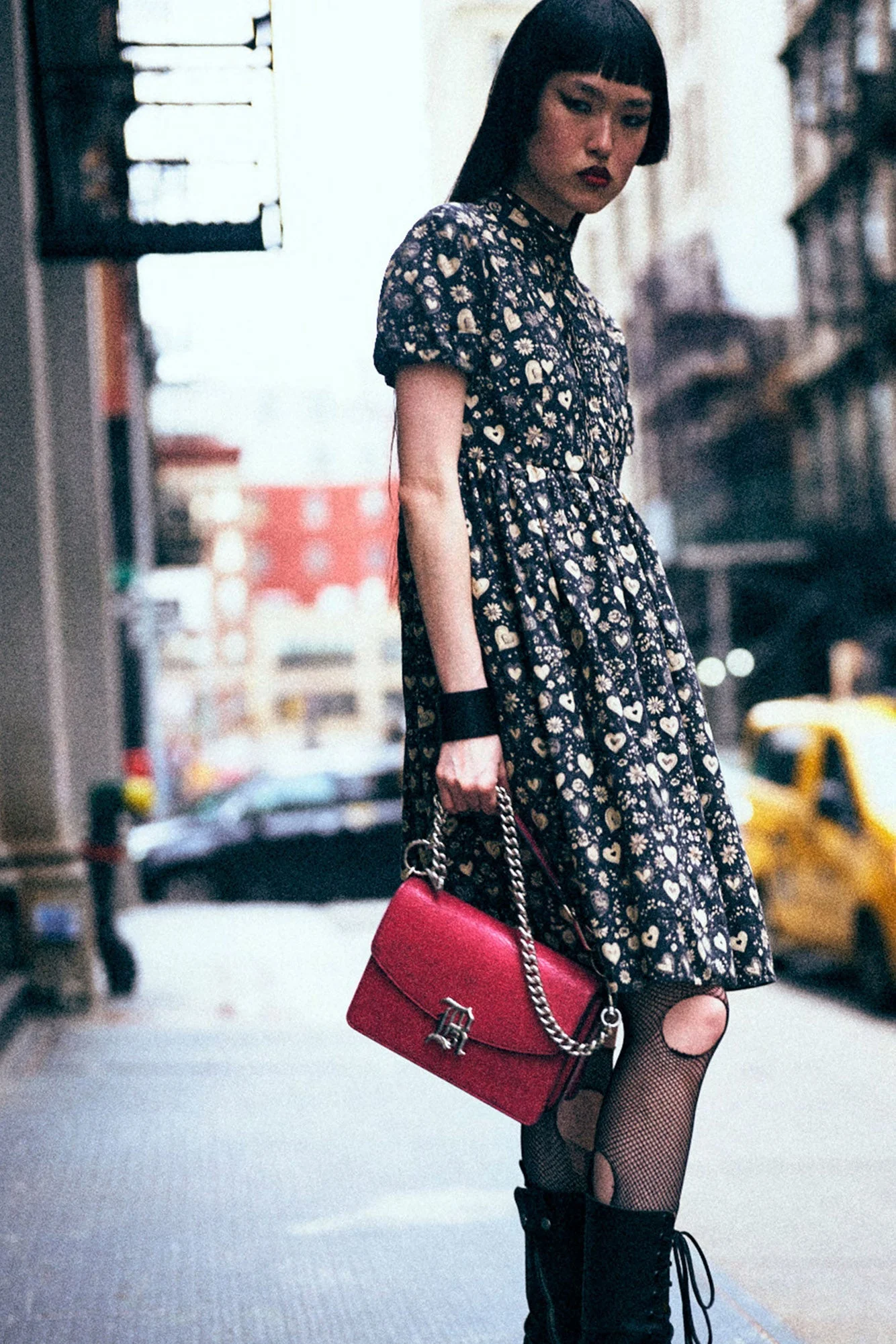 Collard babydoll dress built with printed Italian crinkle silk. DETAILS Made in the USA Color: Mini Hearts on Black 100% Silk R13WR573-R710A