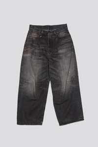 Cropped wide leg jean featuring a pleated waist, knee darts and tapering for a fuller silhouette. Built with 12.5 oz. rigid black denim and treated with a mildly worn wash. - Made in Italy - Color: Wilson Black - 100% Cotton - R13WD046-D284B