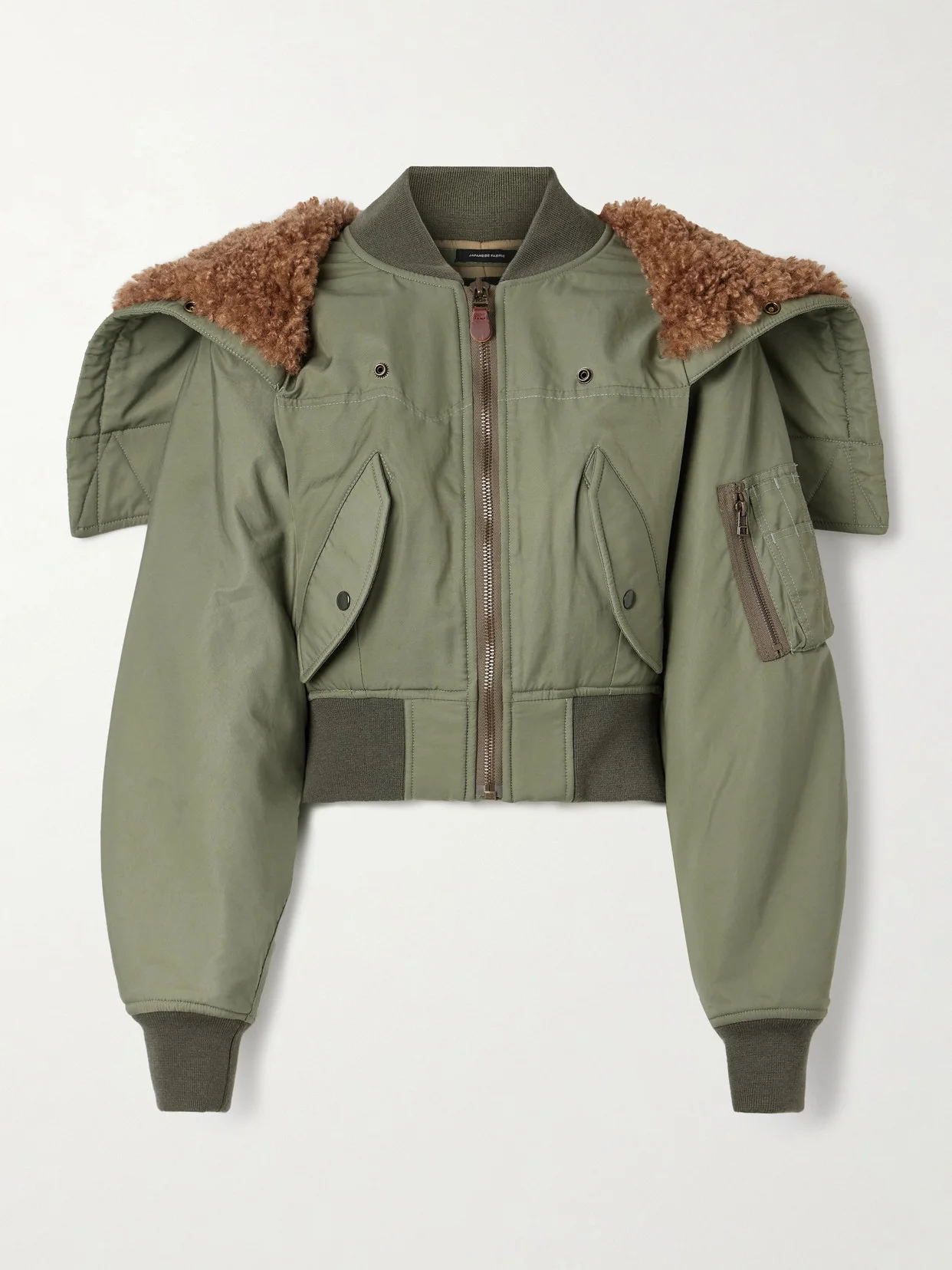 Cropped Fleece-trimmed Padded Cotton-blend Shell Bomber Jacket