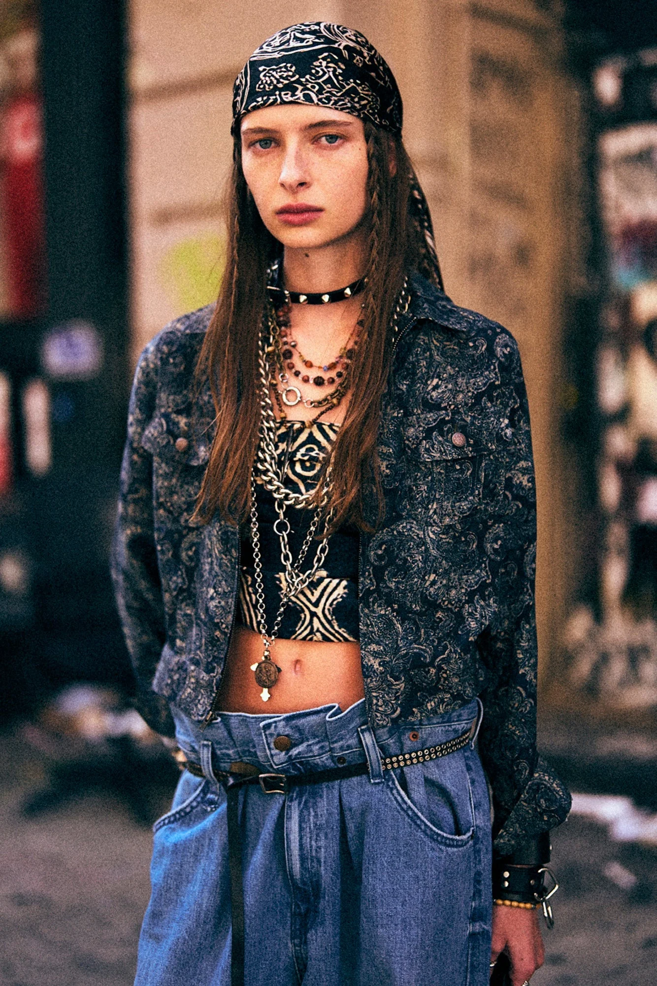 Cropped shrunken zip up jacket built with printed Italian cupro. DETAILS Made in the USA Color: Blue Indigo Paisley 100% Cupro R13WR404-R827A