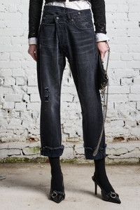 - MADE IN ITALY - Color: Jake Black - Denim with crossover closure - Classic five pocket styling - Model is 5'11" and wearing size 25 - Bust 34"; waist 24"; hips 35” - 100% Cotton - Machine Wash - R13W2048-394