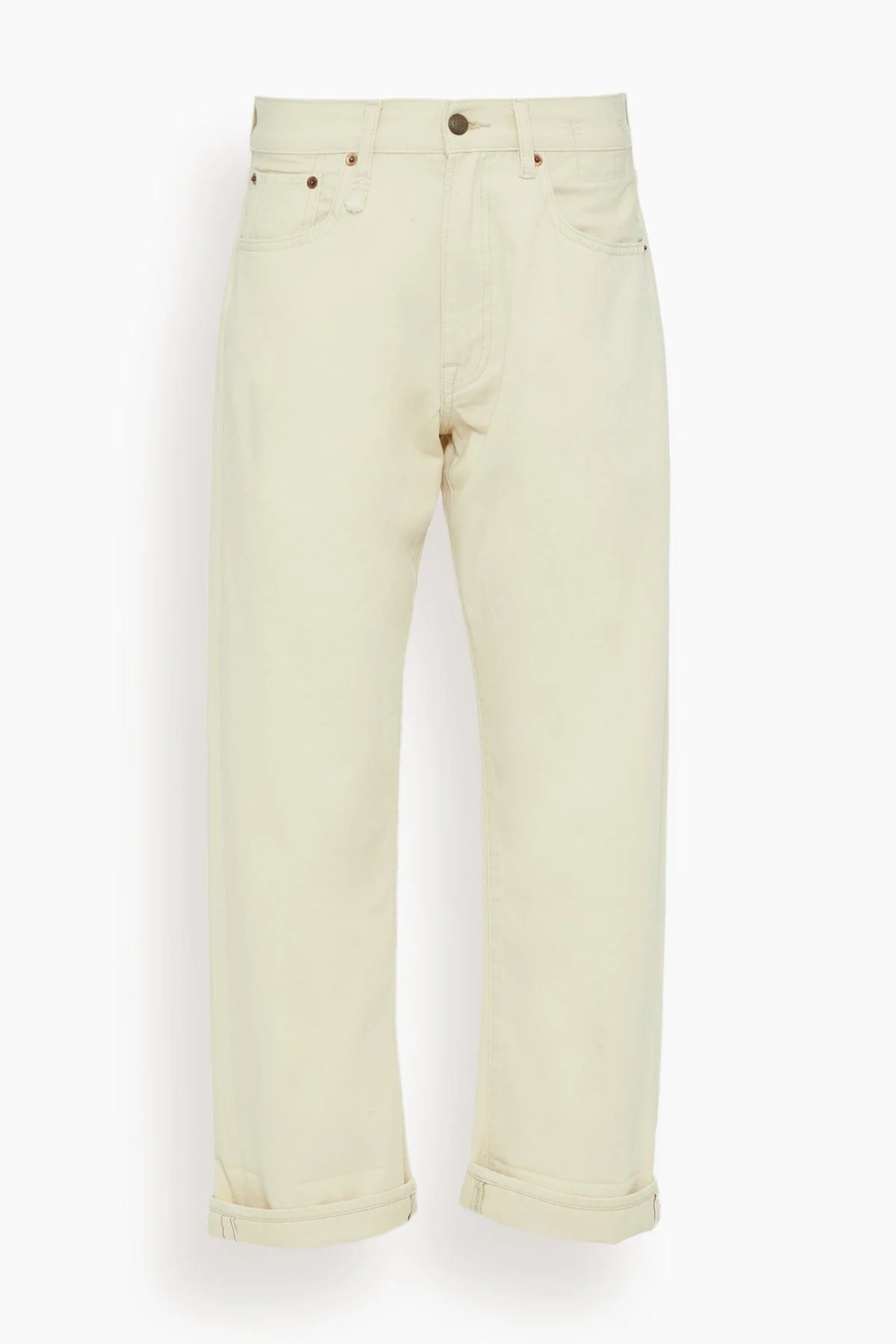 The R13 Cuffed X-BF Jean in Bone White Selvedge is a twist on R13's classic boyfriend jean with a wider, slouchier leg. Built with white 12 oz. mercerized Japanese selvedge denim for a firm sheen and texture. - Straight leg - Cuffed hem - Relaxed fit - 100% Cotton
