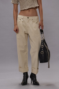 A twist on R13's classic boyfriend jean with a wider, slouchier leg built with white 12 oz. mercerized Japanese selvedge denim for a firm sheen and texture. DETAILS Color: Bone White Selvedge 100% Cotton R13WD111-D335A Imported