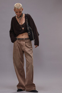 Pleated wide leg jean made with classic five pocket styling. Built with 12 oz. rigid Japanese denim and treated with a light brown sulfur dye and featuring a gentle wear pattern throughout. FIND YOUR SIZE > DETAILS Color: Premium Japanese Denim 100% Cotton R13W3147-D326A Imported