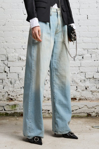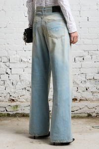 This style runs slightly large. If in between sizes, we recommend sizing down. - Color: Lennon Blue - Classic five pocket styling - Model is 5’11” and wearing size 25 - Bust 34”; waist 24”; hips 35” - 100% Cotton - Made in Italy - R13W3147-897A