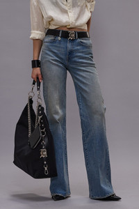 R13's newest fit - the Charlotte. A high rise jean with a subtle flare built with mid-weight comfort stretch Japanese indigo denim and treated with a medium light indigo wash and a mild wear pattern. DETAILS Color: Patton Blue Stretch 98% Cotton, 2% Polyurethane R13WD188-D247A Imported