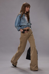 Work shirt featuring wrap placket detail synching the body and two chest pockets. Made with 5.5 oz. rigid denim with a light indigo wash and light wear pattern. DETAILS Color: River Blue 100% Cotton R13WD185-D351A Imported