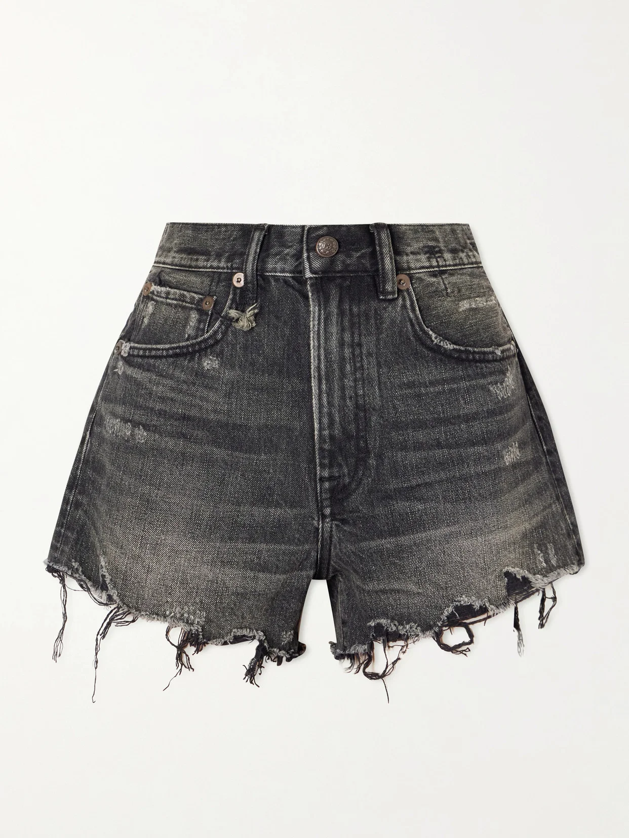 Shredded denim is one of R13's signatures and these shorts prove exactly why. Crafted from sturdy black cotton, they're artfully distressed and whiskered to create a perfectly lived-in feel from the very first wear. Style yours with a leather jacket and biker boots.