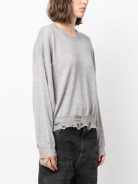 distressed merino-wool jumper R13 injects this jumper with its signature rebellious spirit. Crafted from merino wool, it features a distressed effect and ripped detailing. Highlights - Heather grey - Merino wool - Ribbed-knit edge - Ripped detailing - Crew neck - Drop shoulder - Long sleeves - Straight hem Imported Composition Merino 100% SIZE & FIT Model measurements Height 5 ft 10 in(1.79 m) Bust/Chest 32.67 in(83 cm) Hips 34.25 in(87 cm) Waist 24.4 in(62 cm) Measurement SLEEVE LENGTH 18.89 in(48 cm) Shoulder Width 24.01 in(61 cm) LENGTH 21.65 in(55 cm) BUST 48.81 in(124 cm)