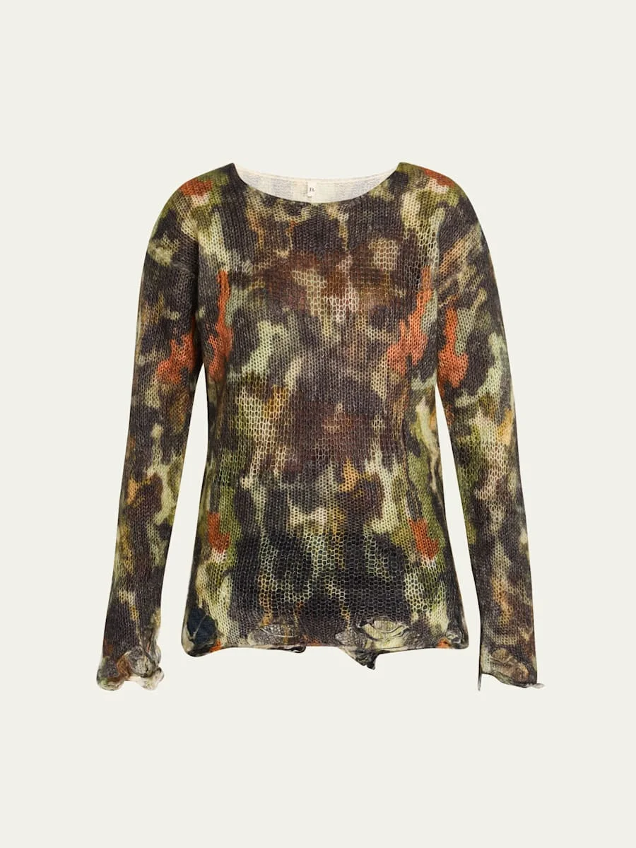 Distressed Wool-Blend Boyfriend Sweater
