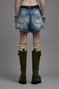 Relaxed baggy shorts with a low drop crotch and dual belt loops for flexible styling and pleats below the pockets for fullness. Built from rigid indigo denim with a medium dark vintage wash.Fits true to size. - MADE IN ITALY - Color: Turner Blue - 100% Cotton - R13WD116-D111A