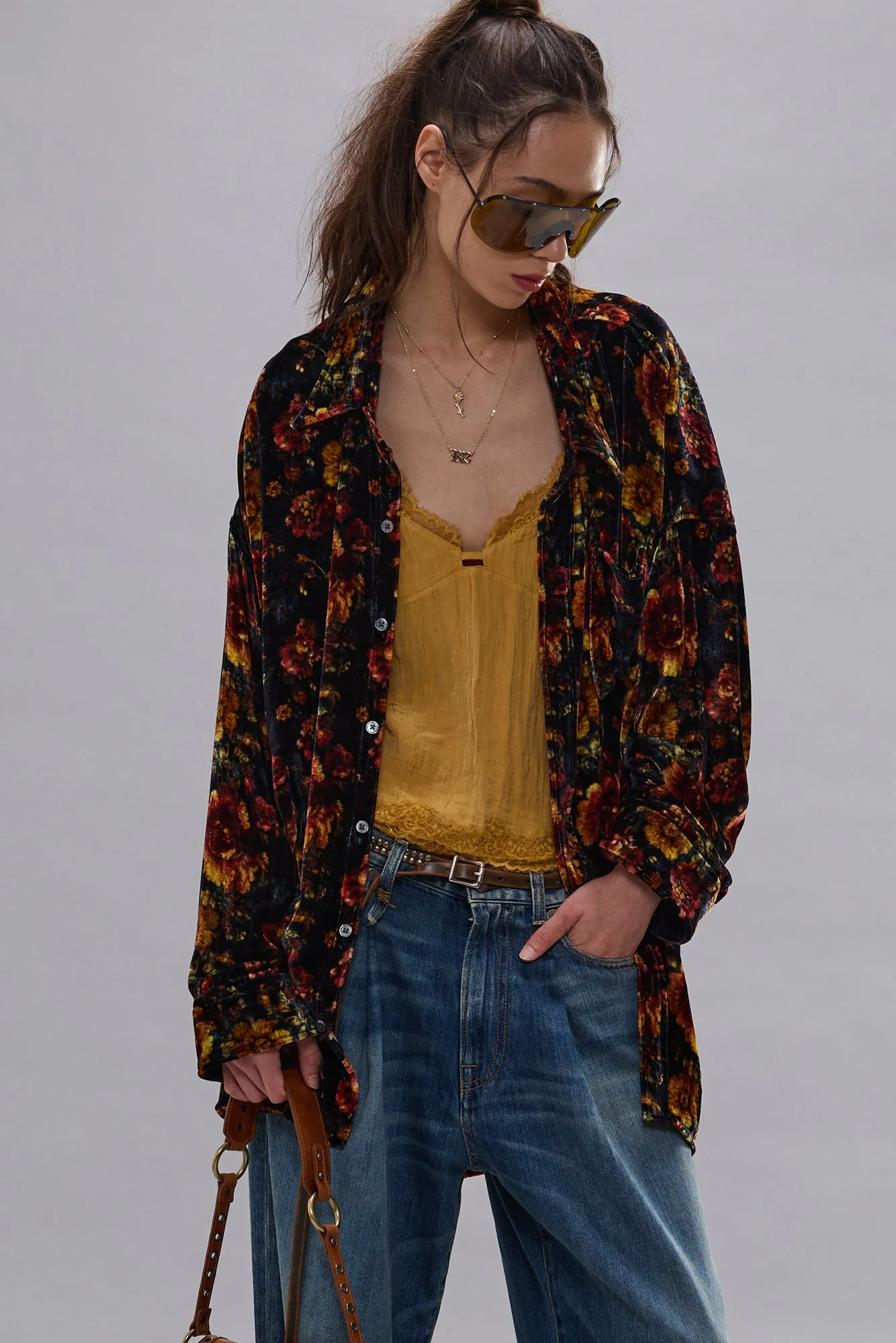 Relaxed drop neck shirt built with printed Italian viscose velvet. DETAILS Made in the USA Color: Orange Multi Floral 82% Linen, 18% Silk R13WR004-R713A