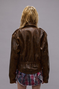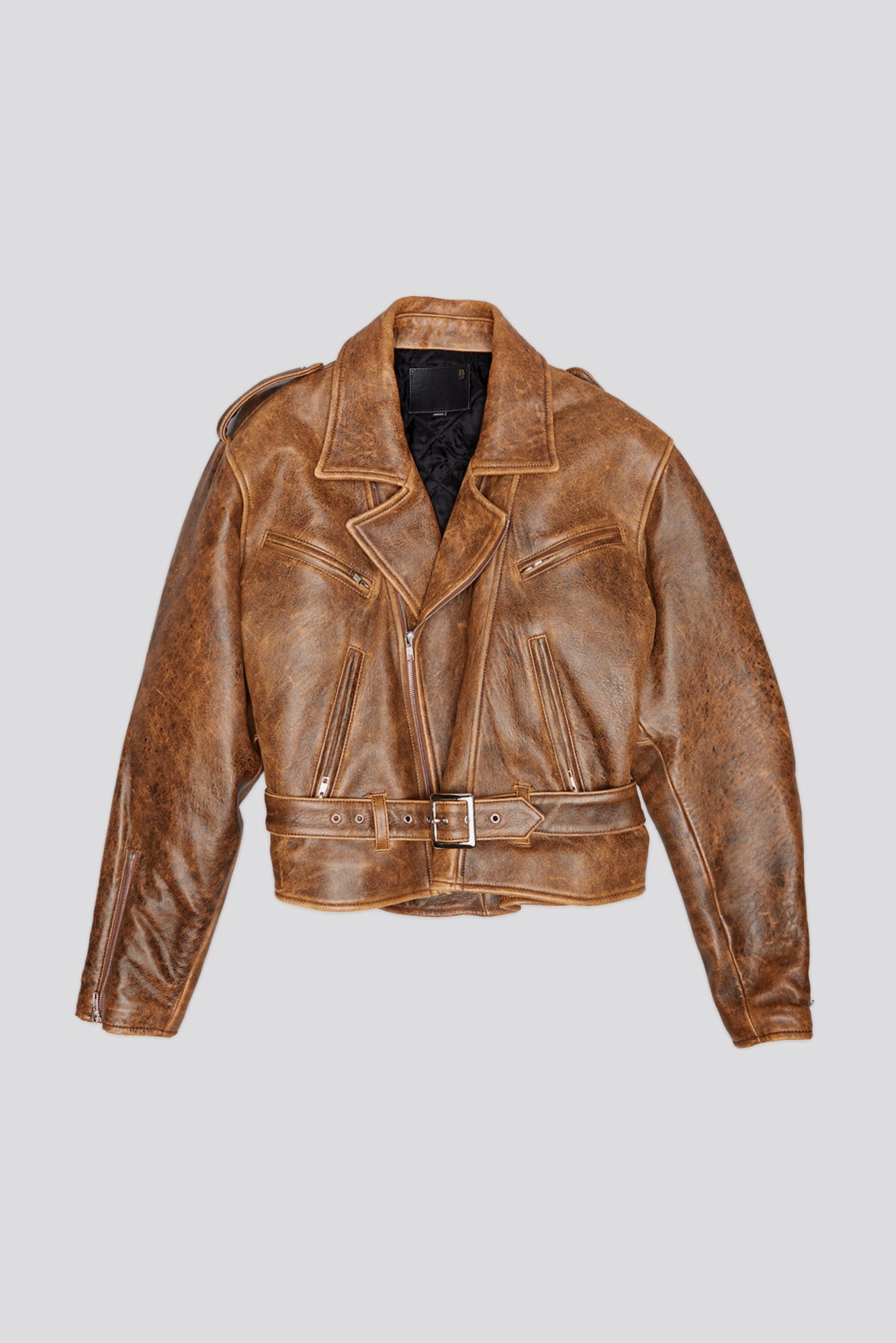 EXAGGERATED SHOULDER MOTORCYCLE JACKET - BROWN LEATHER - R13