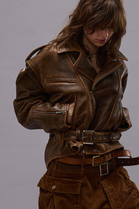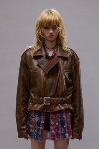 Oversized motorcycle jacket featuring classic motorcycle jacket details and exaggerated shoulders for a bulkier silhouette. - Color: Brown Leather - 100% Leather - R13WR323-R534A - Imported