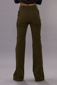 Fitted trouser pant featuring an extended flared leg designed to pool at the feet. - Color: Olive - 76% Cotton, 24% Hemp - R13WR377-R480B - Imported