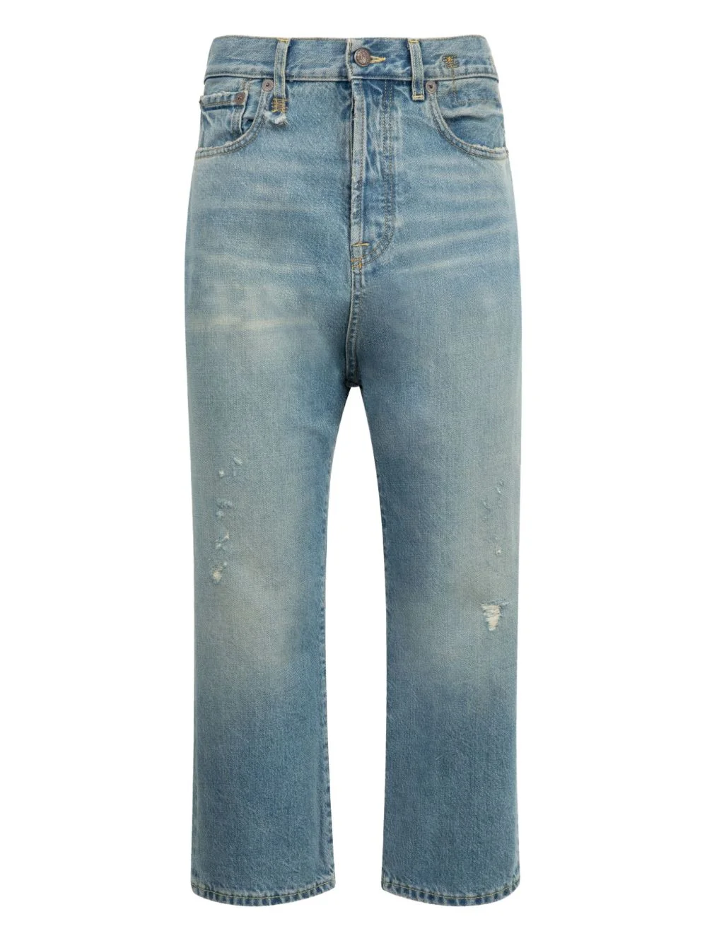frayed-edge jeans Highlights - Light blue - Frayed hem - Distressed effect - High waist - Classic five pockets - Button and fly fastening Imported Composition Cotton 100% Washing instructions Read Manufacturer Guidelines