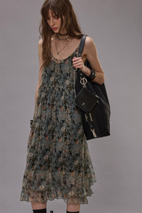 Gathered tank dress featuring a scoop neck, relaxed midi fit and built from Italian crinkle chiffon and lined with cupra. DETAILS Made in Italy Color: Turquoise Floral 100% Silk R13WR289-R588A