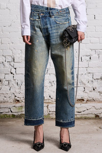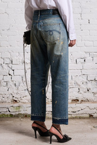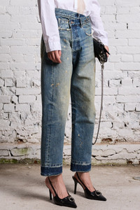 R13's original asymmetrical jean built from rigid Japanese indigo denim and featuring splattered gold paint throughout.This style runs slightly large. If in between sizes, we recommend sizing down. - Color: Clinton Blue - 100% Cotton - R13W2048-D173B - Imported