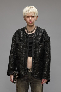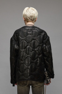Quilted gothic liner featuring a coated tweed construction to give the garment its structured texture. - Made in NYC - Color: Dark Shine - 80% Polycotton, 12% Wool, 8% Polyester - R13WR125-R401A