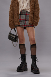 Raw cut mini skirt built from double sided plaid for reversible styling. DETAILS Made in Italy Color: Red/Grey Plaid 52% Cotton, 48% Virgin Wool R13WR470-R566A