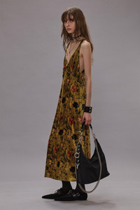 Relaxed V-Neck slip dress built from printed Italian viscose velvet. DETAILS Made in the USA Color: Ochre Floral 82% Viscose, 18% Silk R13WR477-R595A