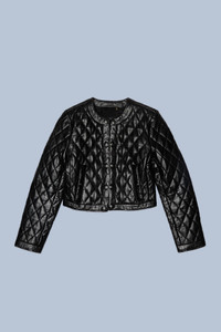 Quilted shrunken leather jacket with hook front closure. DETAILS Color: Black 100% Leather R13WR481-R426A Imported