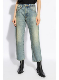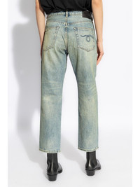 logo-applique straight jeans Highlights - Blue - Cotton - Washed denim - Applique logo - Belt loops - Concealed fly and button fastening - Straight leg - Classic five pockets Made in Italy Composition Cotton 100%