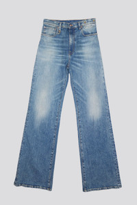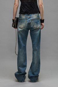 Fitted slim leg jean featuring a subtle flare for a long, lean silhouette. Built with 11.5 oz. Italian indigo stretch denim treated with heavy wear patterns and a warm tint. - MADE IN ITALY - Color: Kelly Stretch - 97% Cotton, 3% Polyurethane - R13W7020-D081A