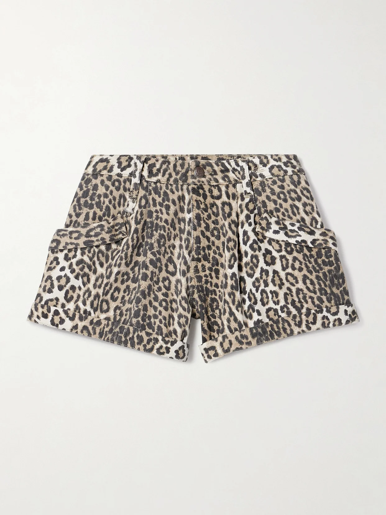Leopard print is often sprinkled throughout R13's collections, embodying classic rock 'n' roll style. These low-rise shorts are made from faded denim and have sizeable pouch pockets and cuffed hems.