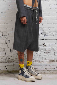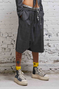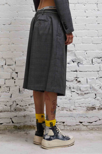 Extremely oversized tailored short featuring trouser pant details and built from 100% Italian glen plaid. The light wool construction makes it suitable for summer weather. - Made in the USA - Color: Dark Glen Plaid - 100% Wool - Sasha is 5’10” and wearing size 27 - Bust 32”; Waist 23”; Hips 35” - R13WR167-R250A
