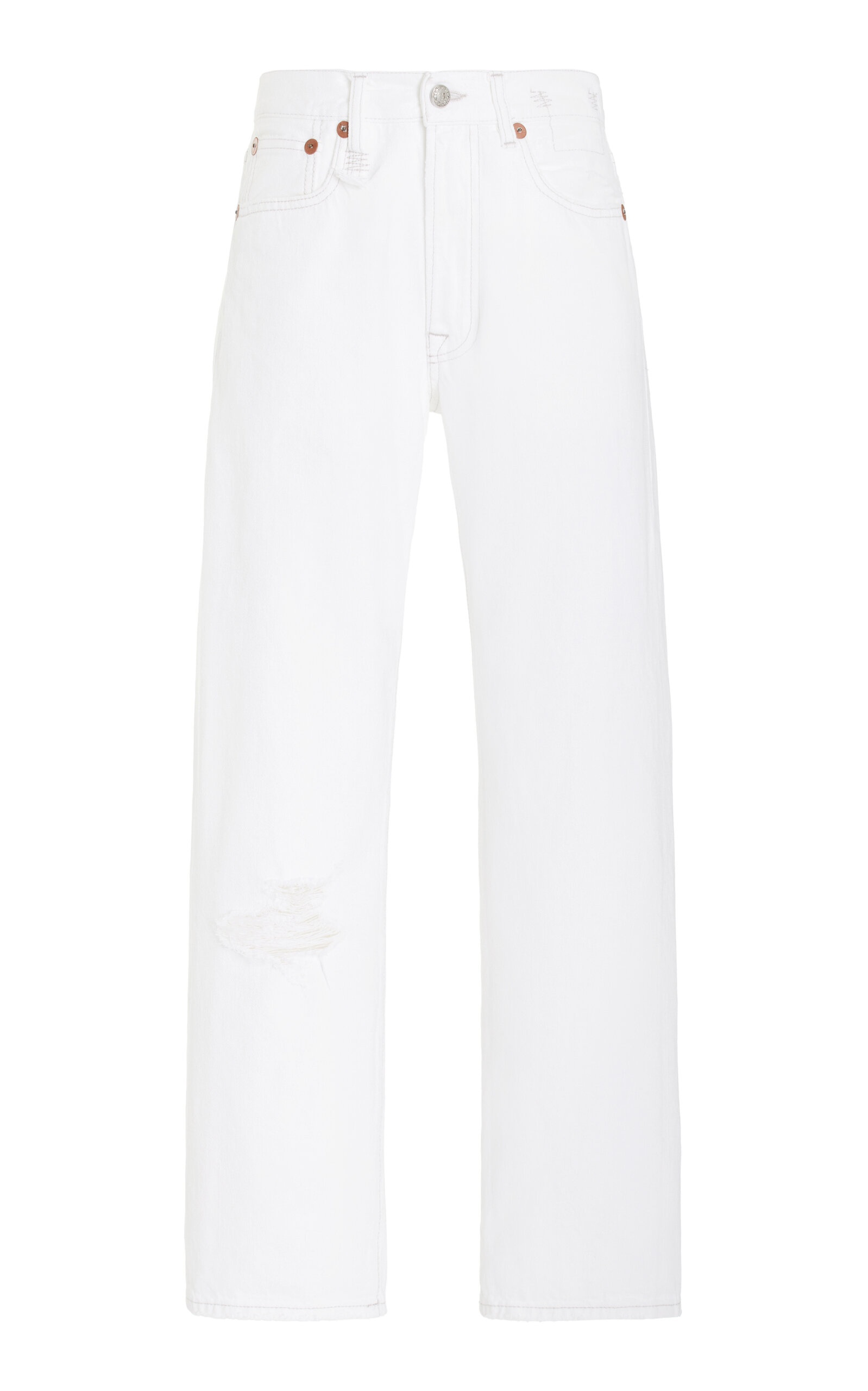 Chris Leba has earned a cult following for his grunge, punk-rock take on all-American classics that are edgy and cool, but also highly considered. Designed to sit low on the hips, the boyfriend jeans have relaxed straight legs cut from non-stretch Japanese selvedge denim. They're heavily distressed and so soft to the touch. PRODUCT DETAILS - Button and concealed zip fastening along front - Composition: 100% cotton - Designer color: Holden White - Machine wash - Imported SIZE & FIT - Our model is 170cm/ 5'7" and wearing a size 26 - Fits true to size, our fit specialist recommends taking your normal size - Designed for a relaxed fit