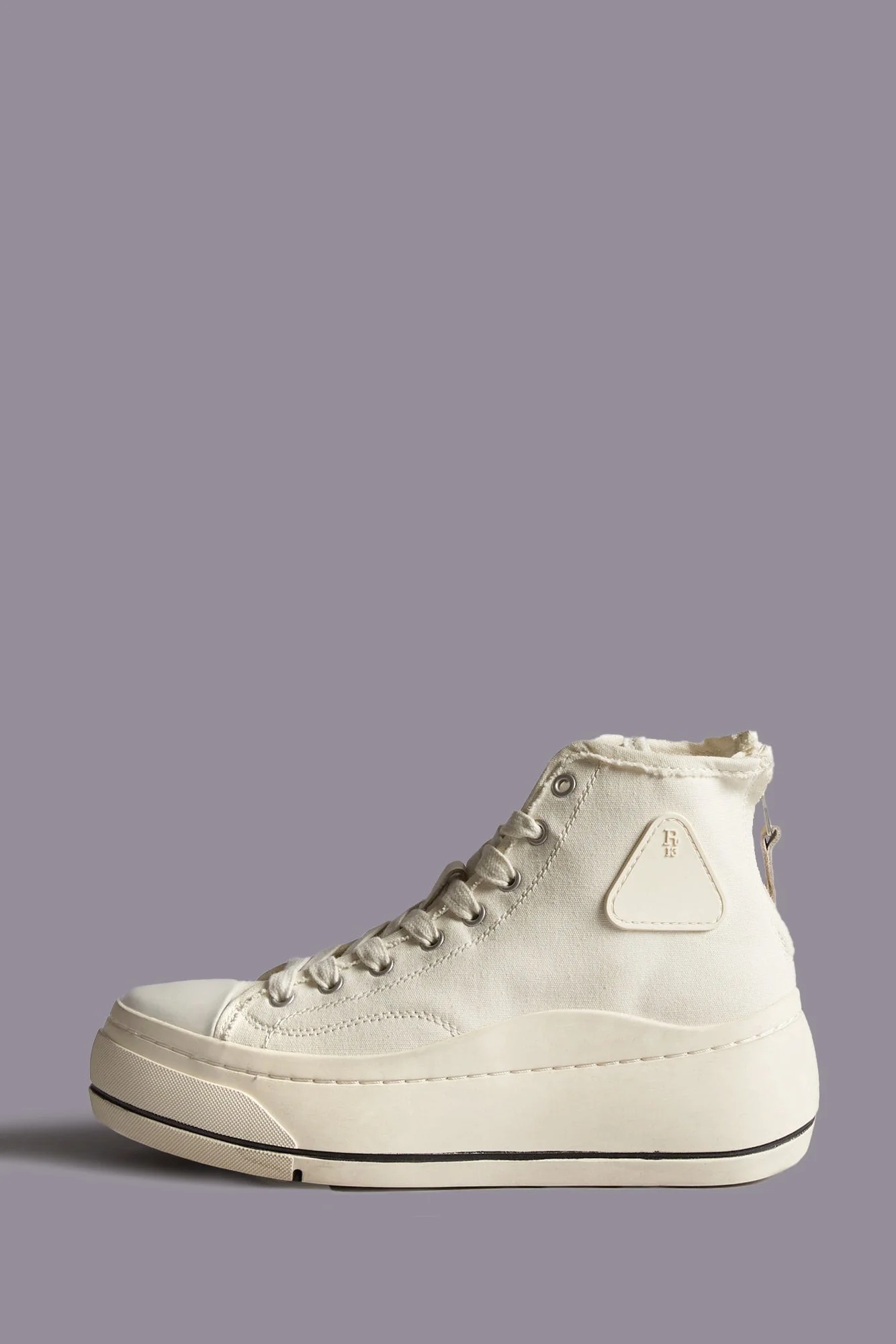 Classic Canvas high-top sneaker with lace-up closure, hand stitched platform and toe cap. This style runs slightly small. If in between sizes, we recommend sizing up. - Color: Ecru - Round leather white/white cap toe and white platform - Lace-up closure - Signature R13 logo on side - Imported - R13S5029-002