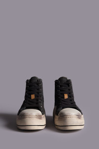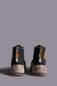 Classic high-top sneaker with lace-up closure, hand stitched chunky platform and toe cap featuring a wool linen blend fabric body. DETAILS Heel Height: 2.5", 65 mm Platform Height: 1.6", 4 cm Shaft Height: 4.1", 10.5 cm Based on size 10; slight variations may occur by size. Color: Dark Grey 80% Virgin Wool, 20% Linen R13S5029-S220A Imported