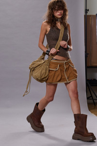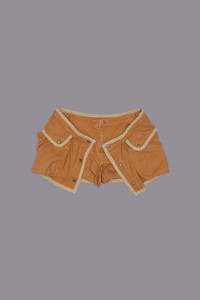 Layered skort featuring baggy snap closure pockets and a heavily washed canvas construction. DETAILS Made in the USA Color: Light Brown 100% Cotton R13WR385-R533B