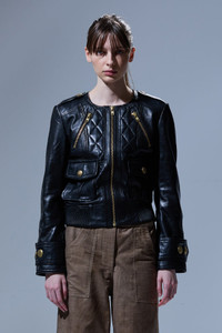 LEATHER SHRUNKEN QUILTED ZIPPERED JACKET