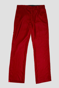 This relaxed fit, ankle length trouser stands apart with its supple red velvet construction. - Made in the USA - Color: Red Velvet - Reese is 5'11" and wearing size 27 - Bust 30"; Waist 23"; Hips 34" - 65% Acetate, 35% Cupro - R13WR223-R300A