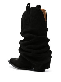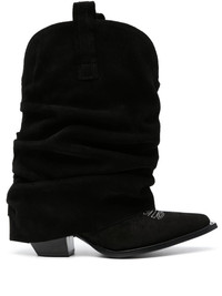 Low Rider distressed cowbody boots Highlights - Black - Calf suede - Cuban heel - Double pull-tab at the opening - Branded footbed - Decorative stitching - Pointed toe Made in Italy Composition Suede 100% SIZE & FIT Measurement CIRCUMFERENCE 6.29 in(16 cm) HEEL 2.16 in(5.5 cm) HEIGHT 10.23 in(26 cm) Sole height 0.78 in(2 cm)