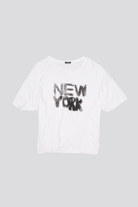 Oversized cashmere blend T featuring a printed "New York" graphic. - Color: Ecru - 95% Cotton, 5% Cashmere - R13WK141-K114B - Imported
