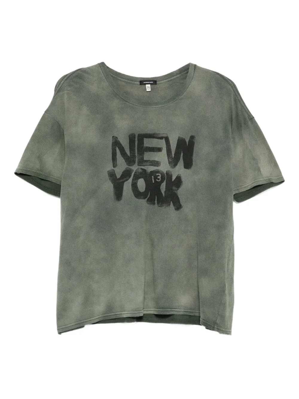 NY T-shirt Highlights - Olive green - Text print - Round neck - Short sleeves Imported Composition Cotton 95%, Cashmere 5% Washing instructions Machine Wash