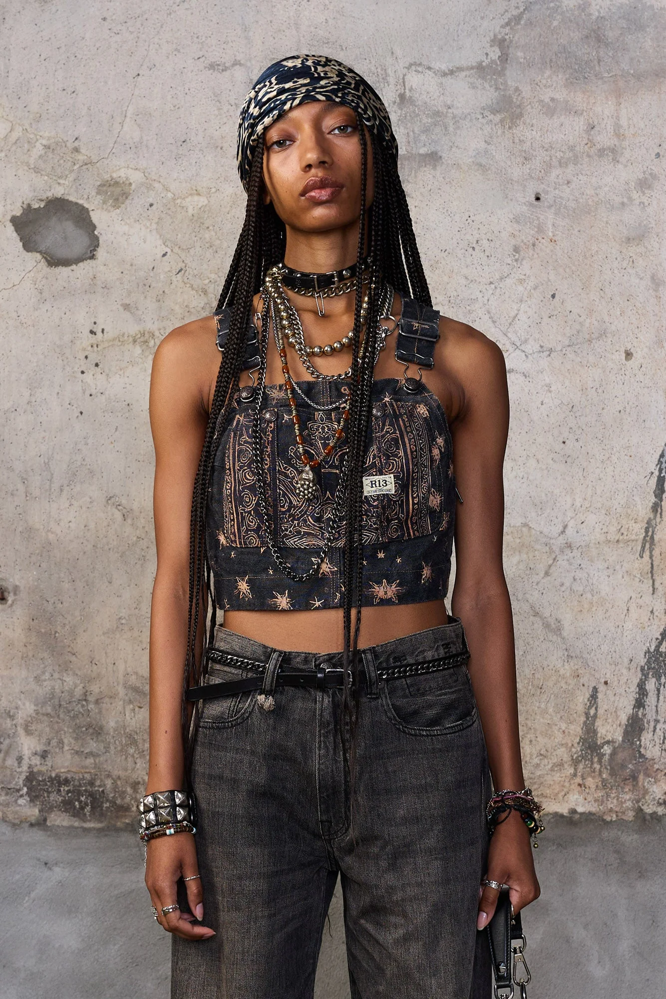 Cinched version of an overall top with side zips for easier removal. Built from printed Italian linen. DETAILS Color: Black Bandana 100% Linen R13WR651-R829B Imported
