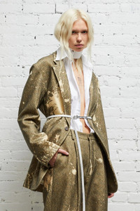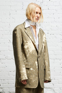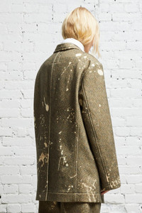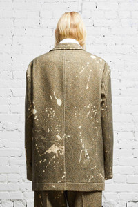 Oversized ragged wool blazer with a digitally printed tweed paint splatter effect. - MADE IN ITALY - Color: Tweed Paint Splatter - 100% Italian Wool - Sasha is 5’10” and wearing size M - Bust 32”; Waist 23”; Hips 35” - R13WR020-R271A