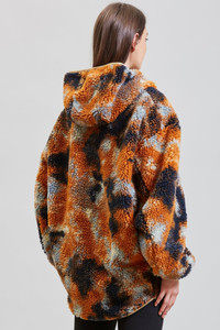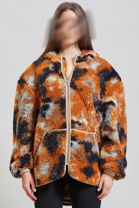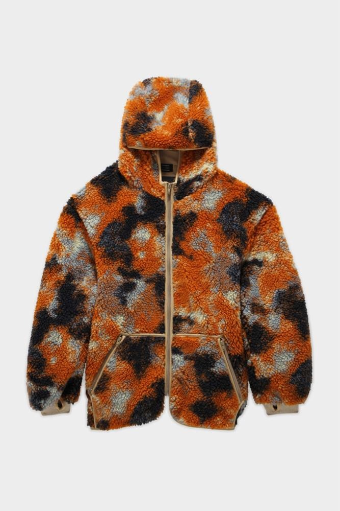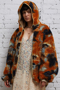 Oversized Fleece hoodie made from Japanese Polyester Fleece and manufactured in USA. Fully lined with mesh and zip up front closure. - Color: Rust Camo - Model is 5’10” and wearing size M - Bust 34”; waist 24”; hips 35” - 100% Polyester - Dry clean only - Made in USA - R13WR070-R104A