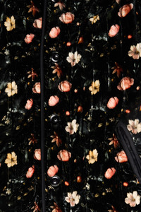 Padded liner coat built with printed Italian velvet and polyfill lining. DETAILS Made in the USA Color: Multifloral Black 82% Viscose, 18% Silk R13WR526-R635A