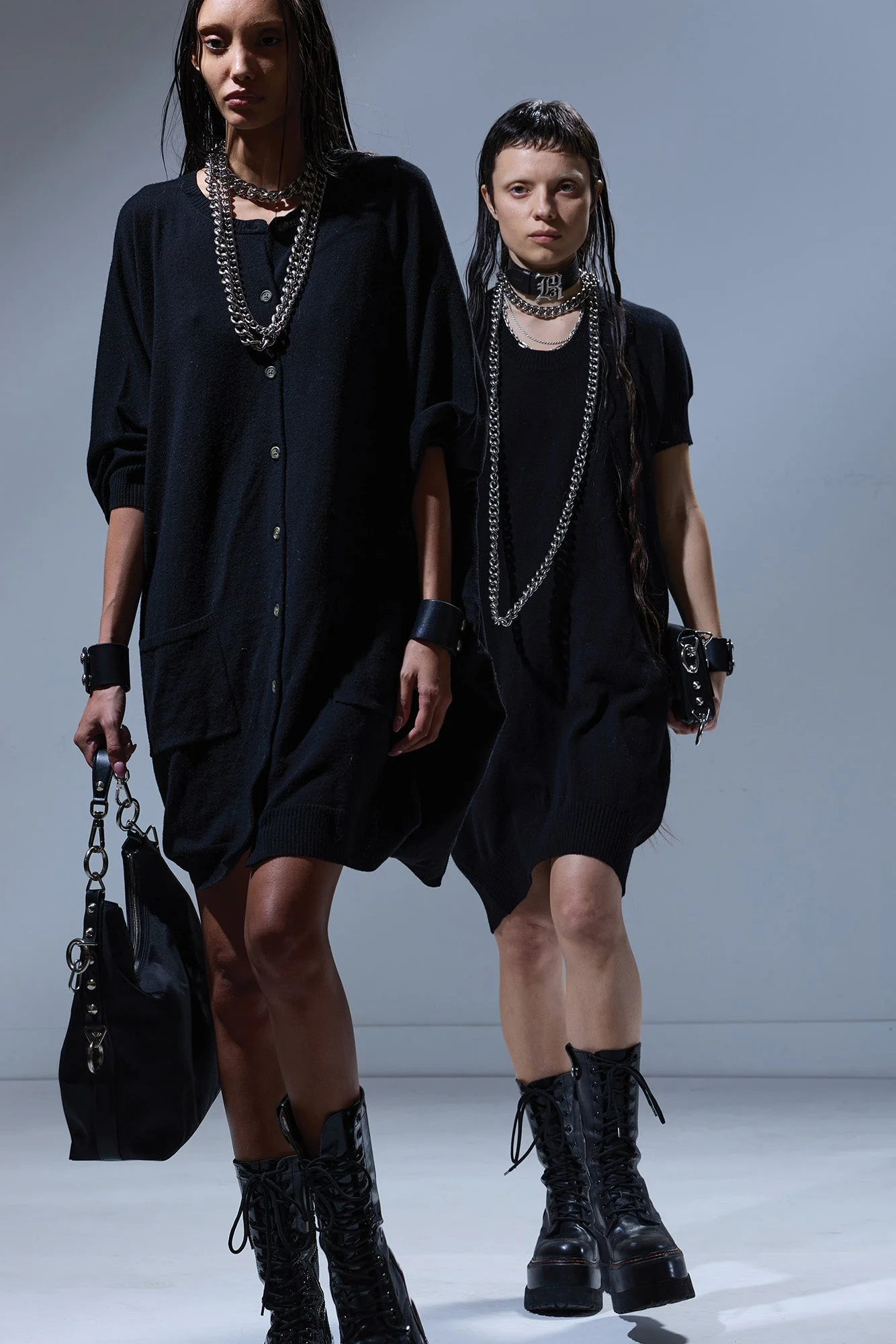 Oversized parachute cardigan dress with a draped fit. DETAILS Color: Black 100% Wool R13WY314-Y016B Imported
