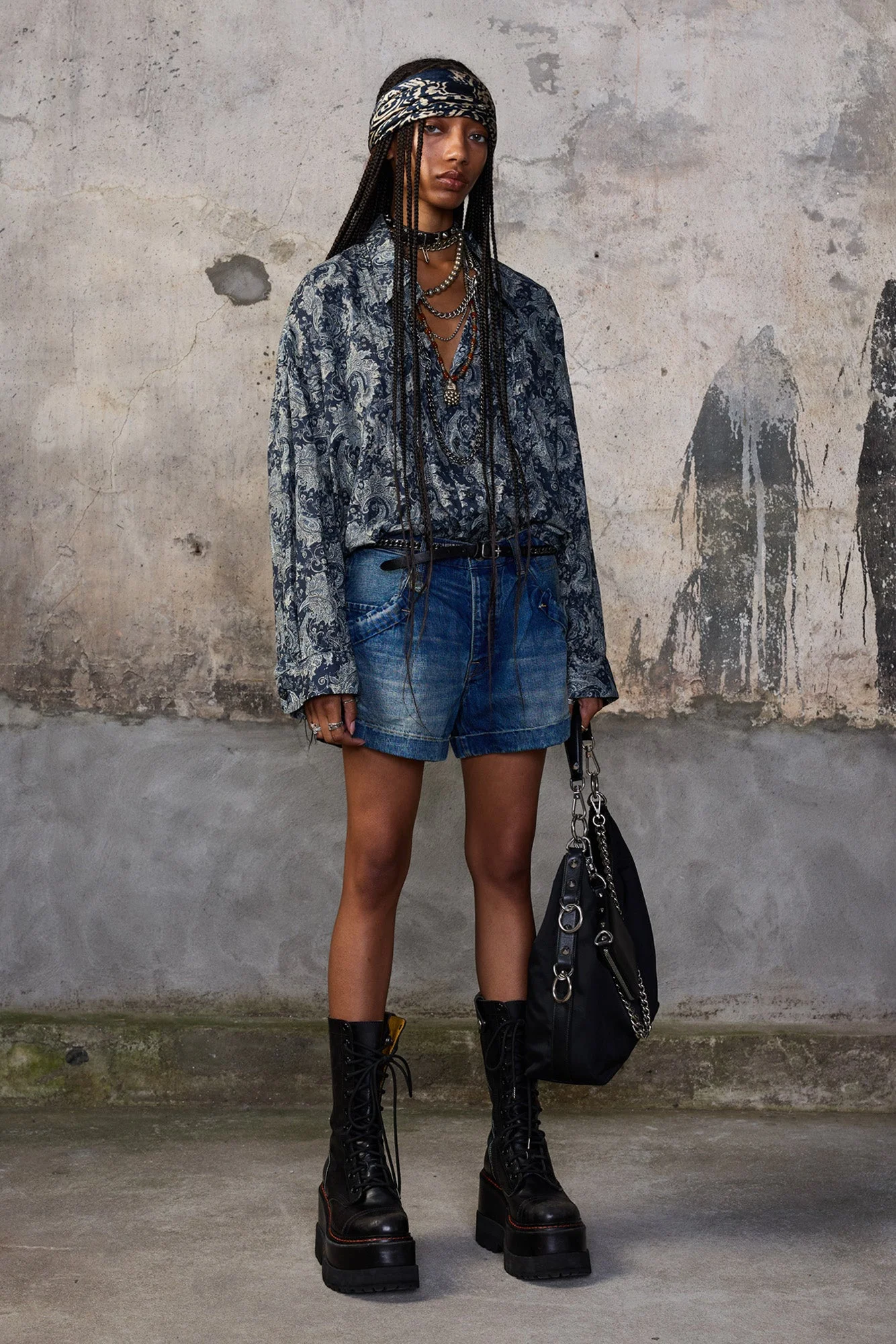 Fitted short inseam shorts with pouch pockets, flap details and single pleats at waist. Built with 10 oz. Japanese selvedge denim and a dark indigo wash with heavy wear pattern. DETAILS Color: Depot Blue 100% Cotton R13WD104-D423A Imported