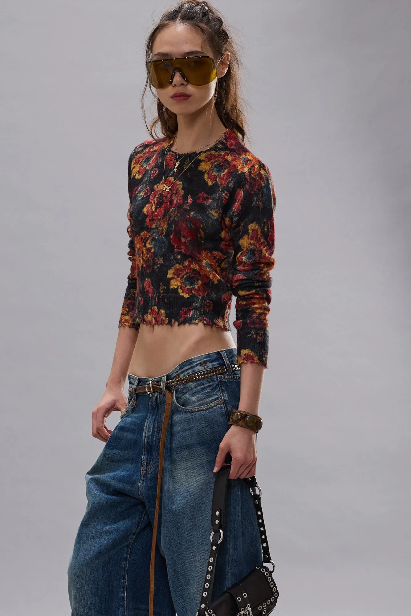 Cashmere baby crewneck sweater featuring a printed red floral design. DETAILS Color: Red Floral Multi 100% Cashmere R13WY042-Y253A Imported