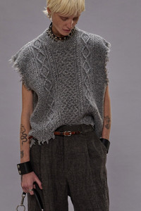Oversized boxy cable sweater vest with heavily distressed hems. DETAILS Color: Heather Grey Tweed 60% Wool, 20% Polyamide, 20% Viscose R13WY228-Y208A Imported