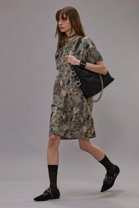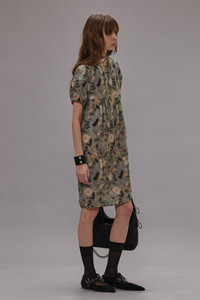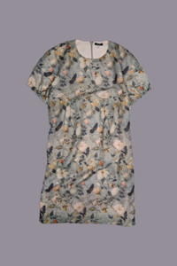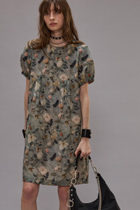 Raglan sleeve babydoll dress with a high scoop neck, empire waist and back zipper. Built from Italian wool gauze with Georgette lining. DETAILS Made in Italy Color: Turquoise Floral 70% Wool, 21% Silk, 9% Polyamide R13WR475-R596A