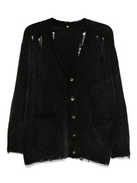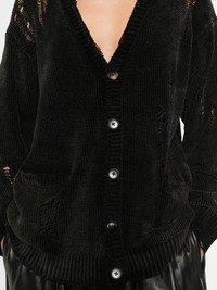 raw-cut fine-knit cardigan Highlights - Black - Front button fastening - V-neck - Drop shoulder - Long sleeves Imported Composition Cotton 85%, Polyester 15% SIZE & FIT Model measurements Height 5 ft 10 in(1.79 m) Bust/Chest 31.88 in(81 cm) Hips 35.43 in(90 cm) Waist 23.62 in(60 cm) Washing instructions Hand Wash